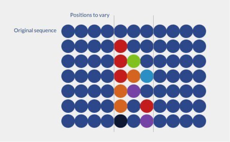 The higher the number of selected residues to be randomized, the larger the library. However, unlike other combinatorial library designs, vast libraries do not always translate into better experiments.